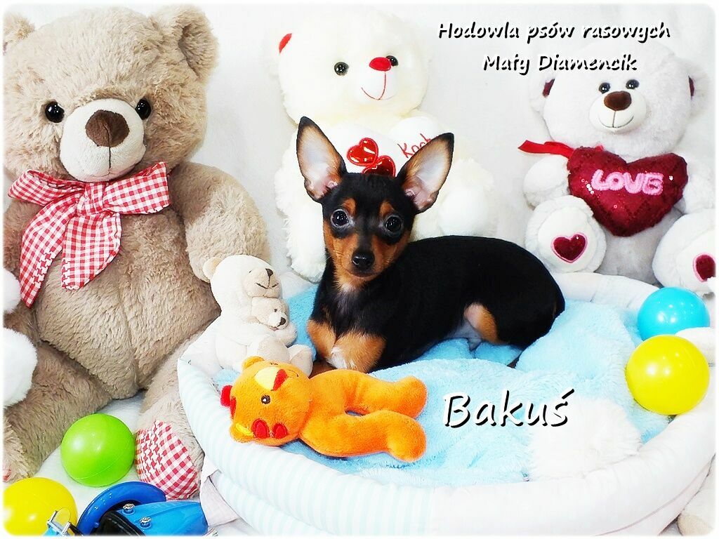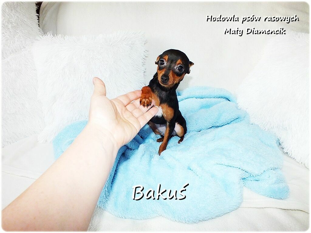 Witamy serdecznie w naszej małej domowej hodowli Mały Diamencik.Aktualnie posiadamy w sprzedaży malutkiego pieska o imieniu BAKUŚ rasy pinczer miniaturowy ( potocznie ratlerek / sarenka ).